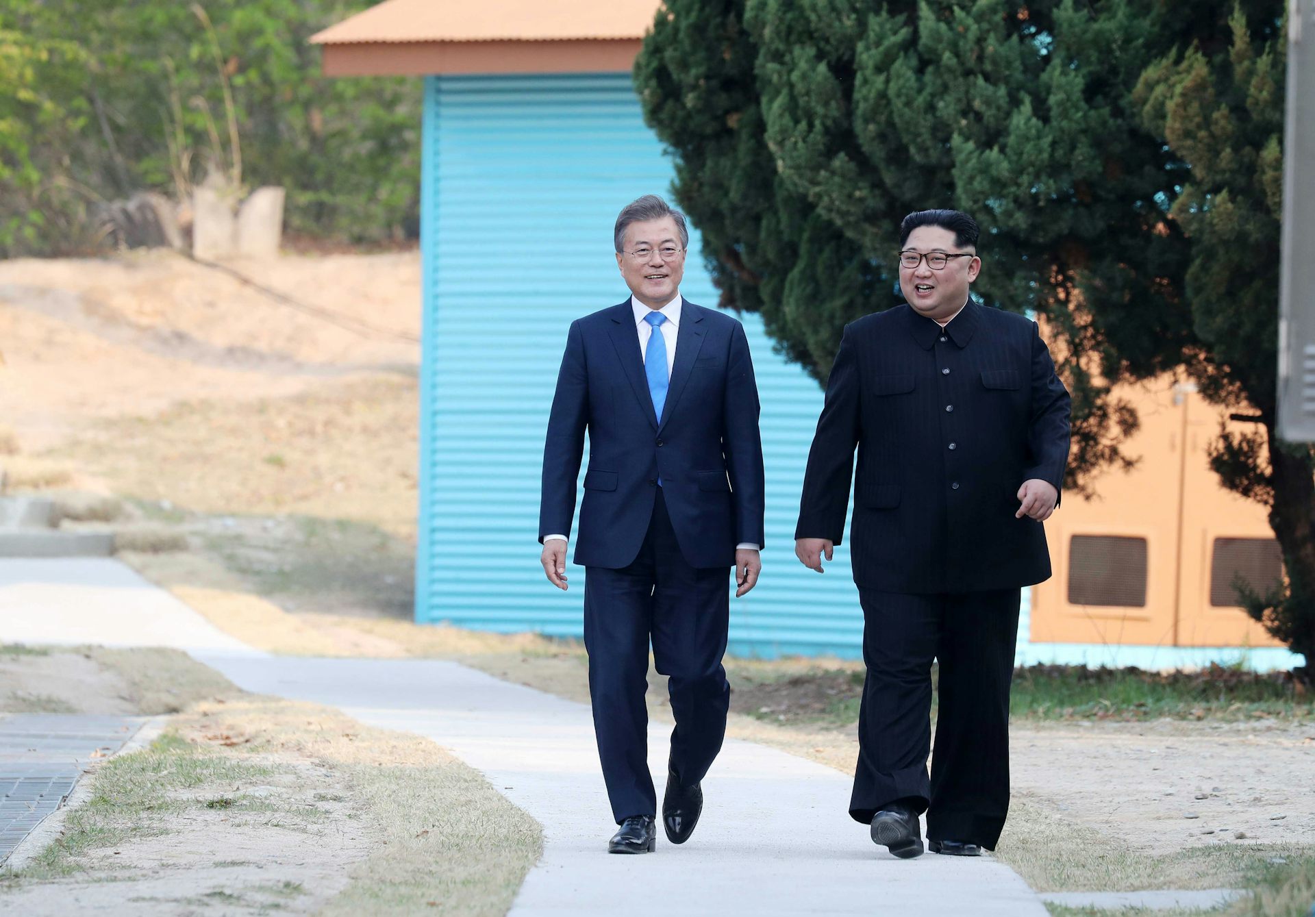 Moon Jae-in meets Kim Jong-un on the Korean border.