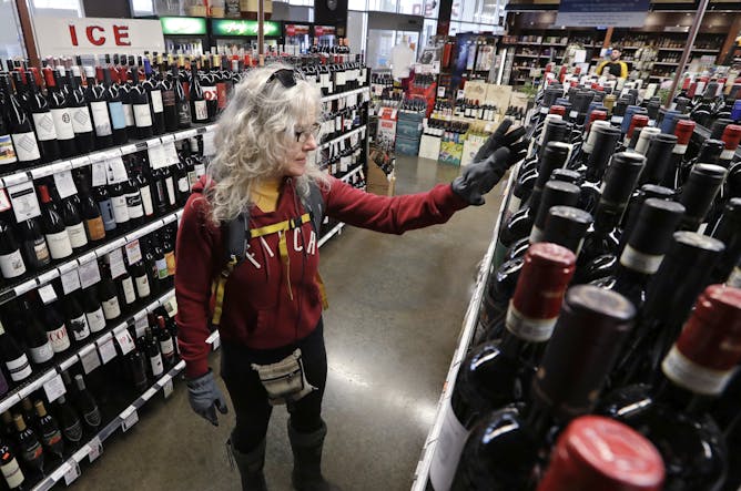 Shopping for wine in Seattle, where many liquor stores are considered “essential businesses.”
