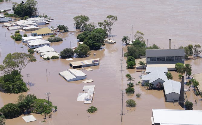 Flood damage in Bundaberg, Queensland, in 2013. Most communities are at some risk from extreme events, but repeated disasters raise the question of relocation.