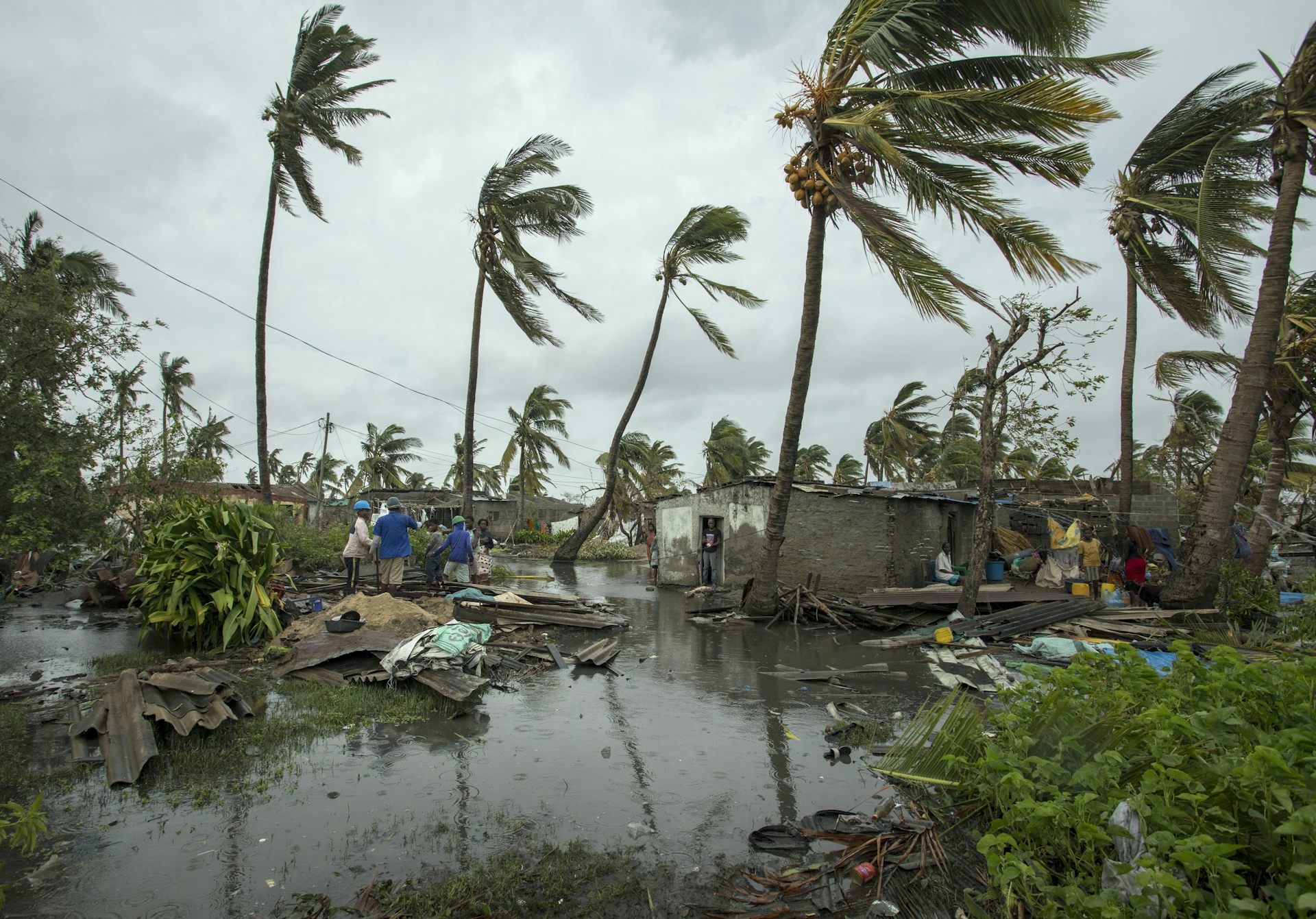 A woman searches for materials to rebuild her home after the passage of Cyclone Idai, in Beira City, central Mozambique.