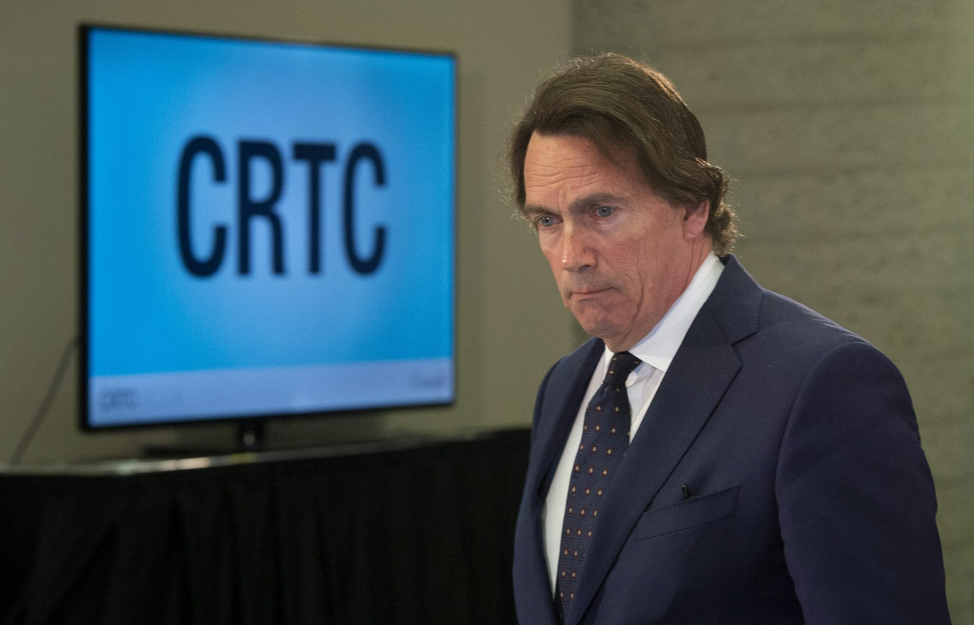 Le PDG de Québecor Pierre Karl Péladeau en attente de son témoignage devant le CRTC à Gatineau, le 17 avril. Le conflit entre Québecor et Bell met en lumière la grande vulnérabilité des joueurs traditionnels de l’industrie face aux nouveaux venus numériques.