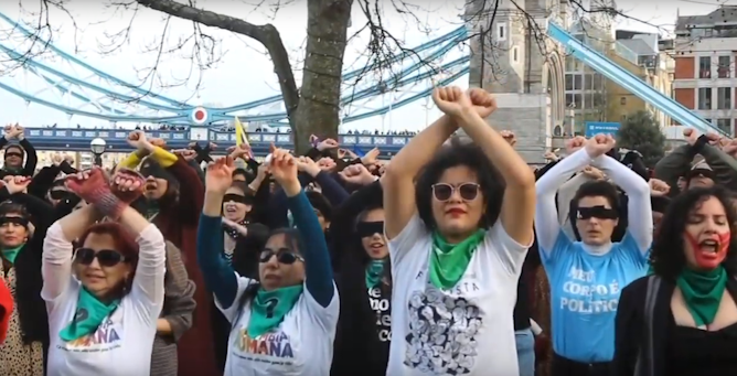 ‘The rapist is you’ sung next to Tower Bridge on December 7.