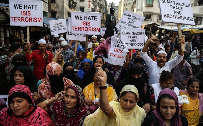 Muslim protesters in India marching against the Islamic State after the 2015 terror attacks in Paris.