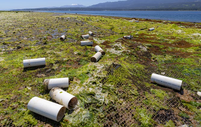Growing demand for large salt-water clams is leaving parts of the B.C. coast littered with plastic debris.