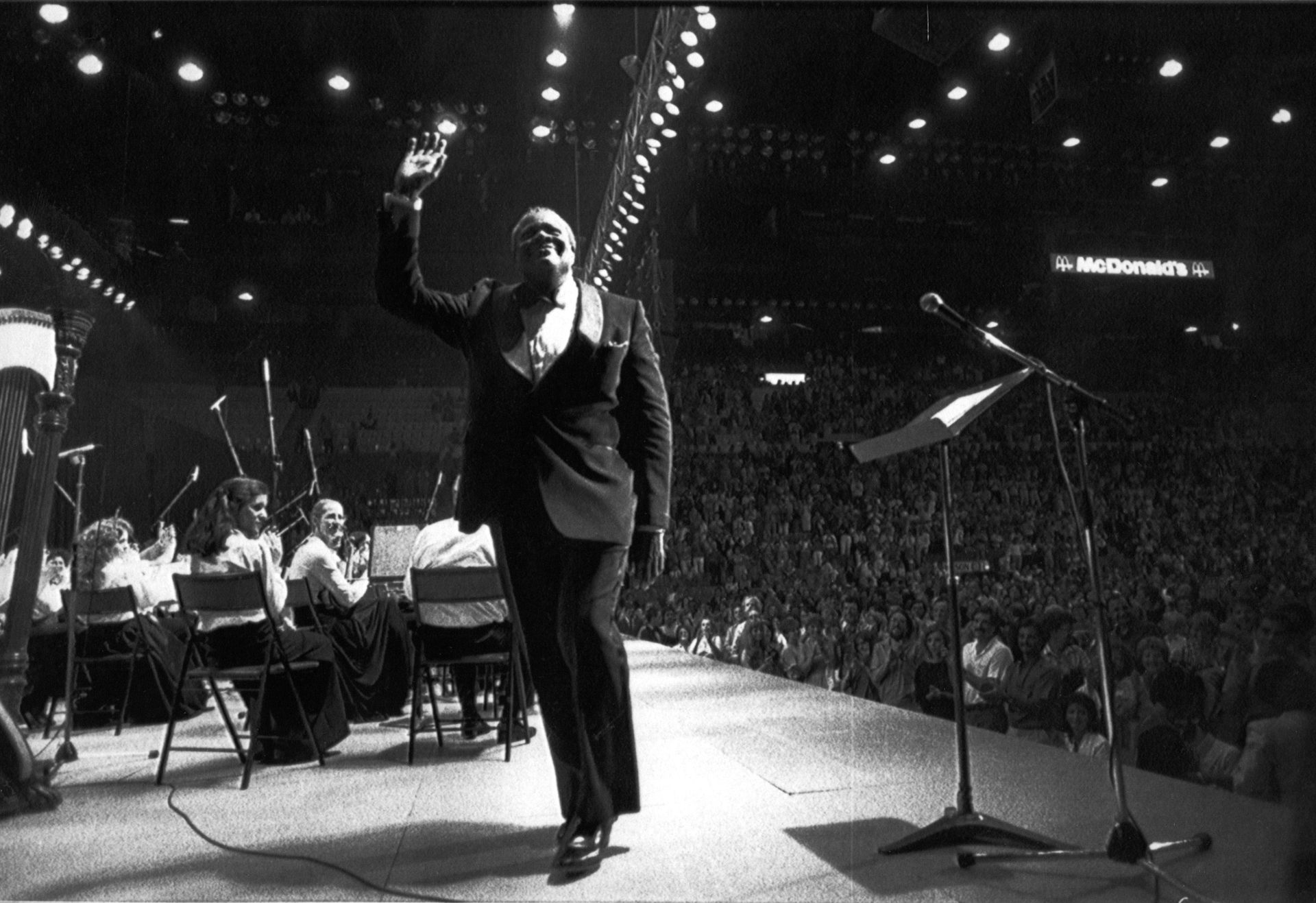 Montreal-born pianist Oscar Peterson waves after playing at the Montreal Forum in July 1984. The Coalition for Music Education is inviting schools and communities across Canada to sing “Hymn To Freedom,” written by Peterson and Harriette Hamilton, on Music Monday 2019, a day to celebrate music.
