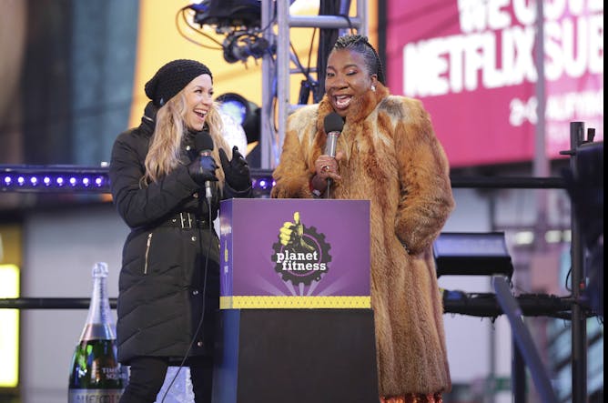 A sign of how historical #MeToo felt in 2017 is this appearance by #MeToo founder Tarana Burke with TV personality Allison Hagendorf on stage at the New Year’s Eve celebration in Times Square on Dec. 31, 2017, in New York.