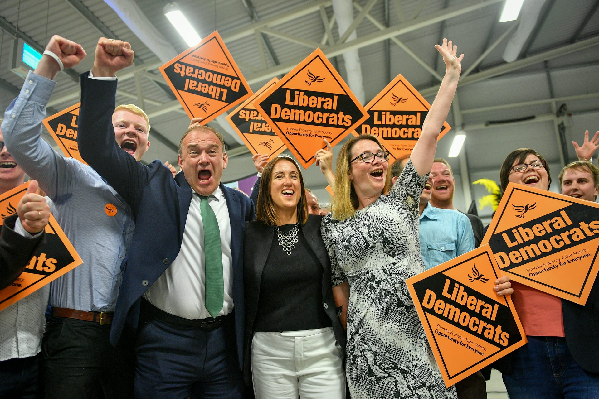 Jane Dodds celebrates her victory in Brecon and Radnorshire.