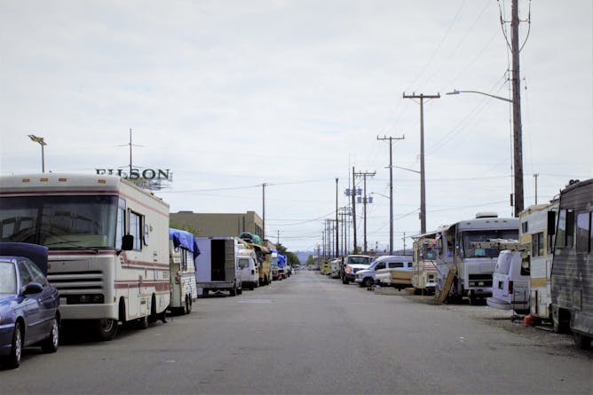 Without off-street space, vehicle residents crowd available public parking in Seattle. May 8, 2016.