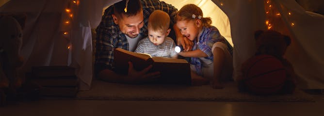 Whether indoors or outdoors, building a makeshift creative space to share the joy of books lays a foundation for early literacy.