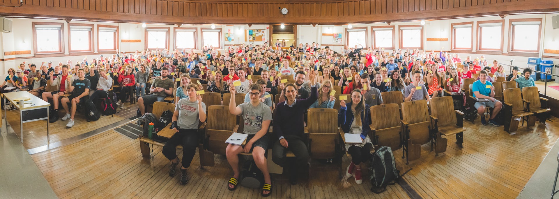 Prof. Stephen Meyers and his Geoscience 100 class at the University of Wisconsin-Madison. Photo by Ethan Parrish.