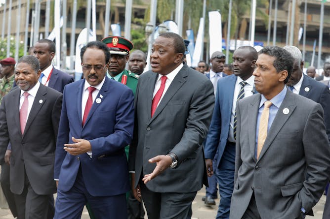 Somali president Mohamed Abdullahi Mohamed (second left) and Kenyan president Uhuru Kenyatta (second right).