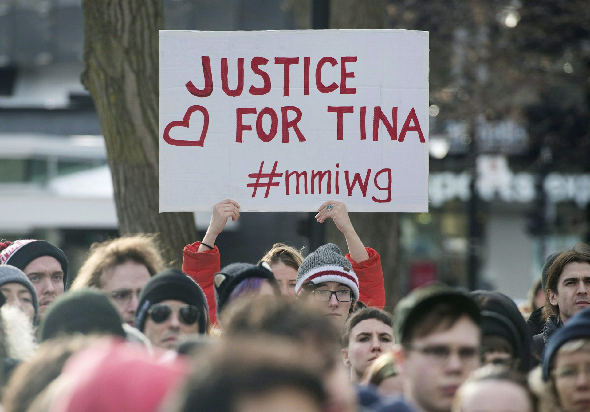 People attend a rally in memory of Tina Fontaine in Montreal, Saturday, February 24, 2018.