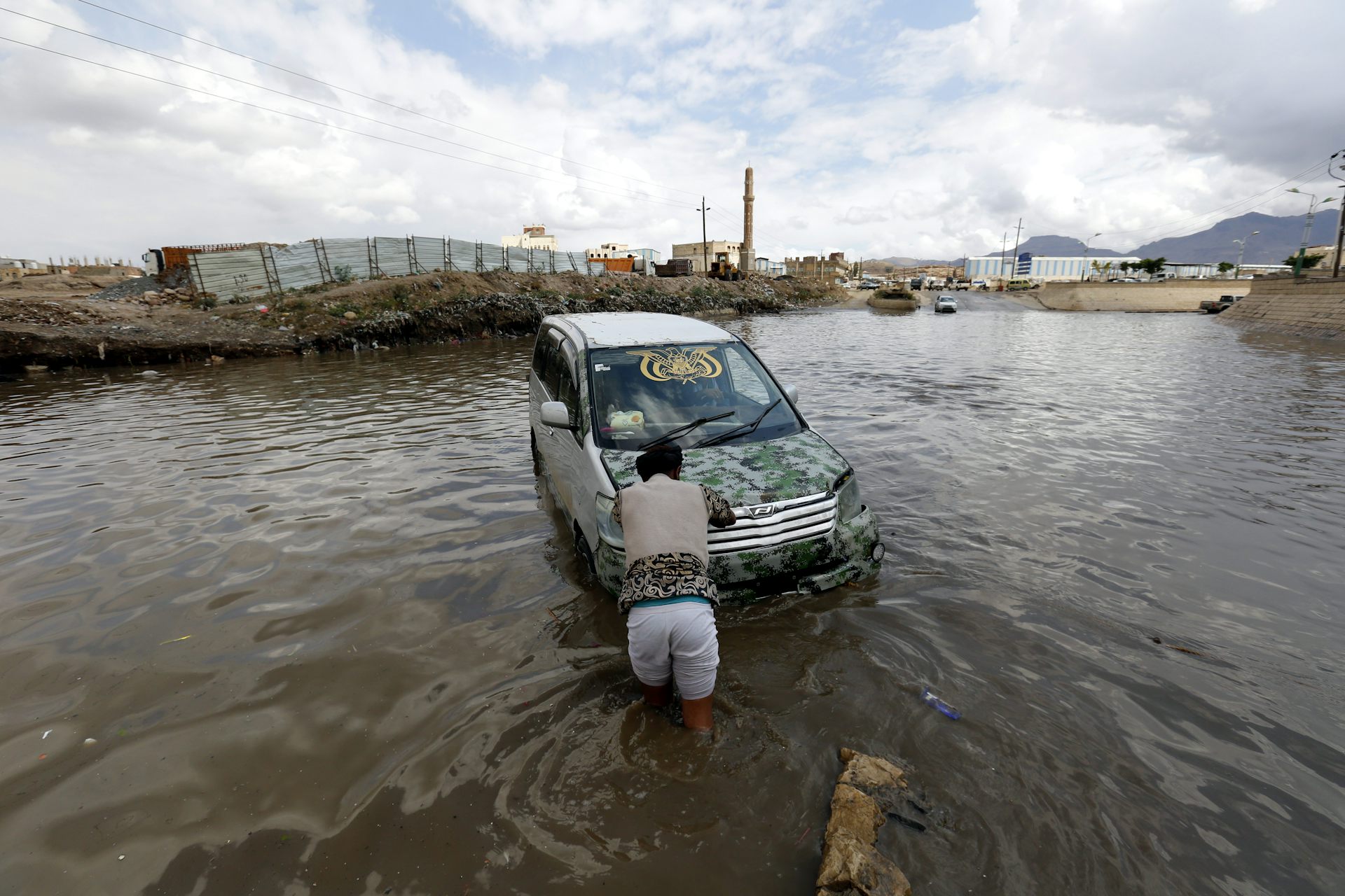 Heavy rains driven by a cyclone in Sana’a, Yemen.