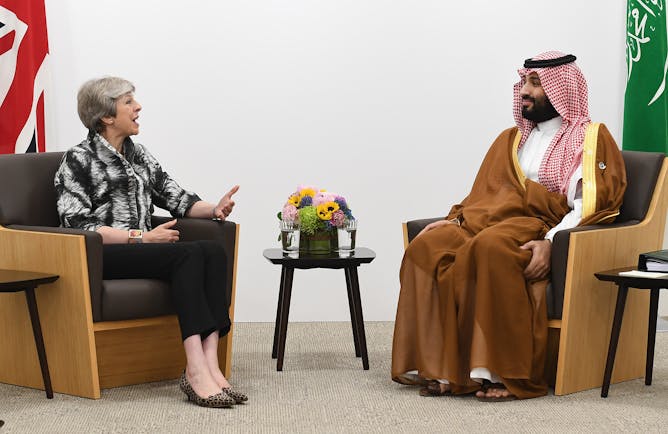 British Prime Minister Theresa May meets Crown Prince Mohammed bin Salman of Saudi Arabia at the G20 in Osaka, Japan.