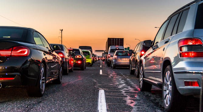 A traffic jam on a busy highway near Vancouver, B.C.