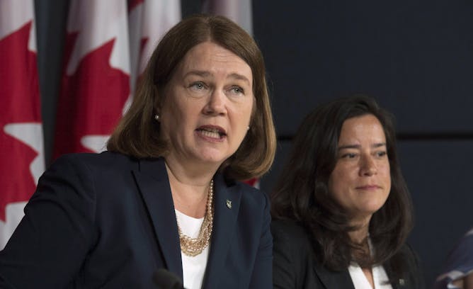 Jane Philpott and Jody Wilson-Raybould are seen during a news conference in Ottawa in June 2016.