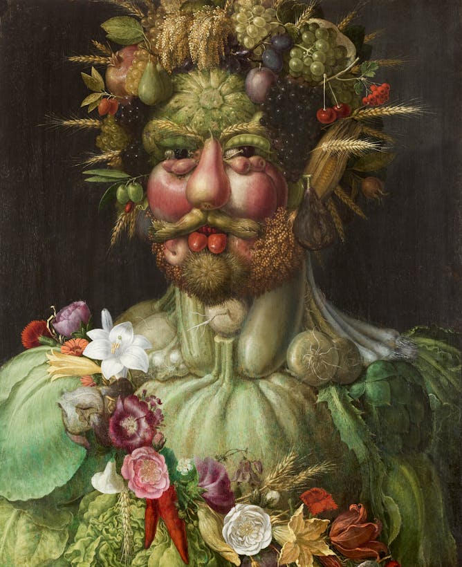Detalle del retrato de Rodolfo II del Sacro Imperio Romano Germánico obra de Guiseppe Arcimboldo.
