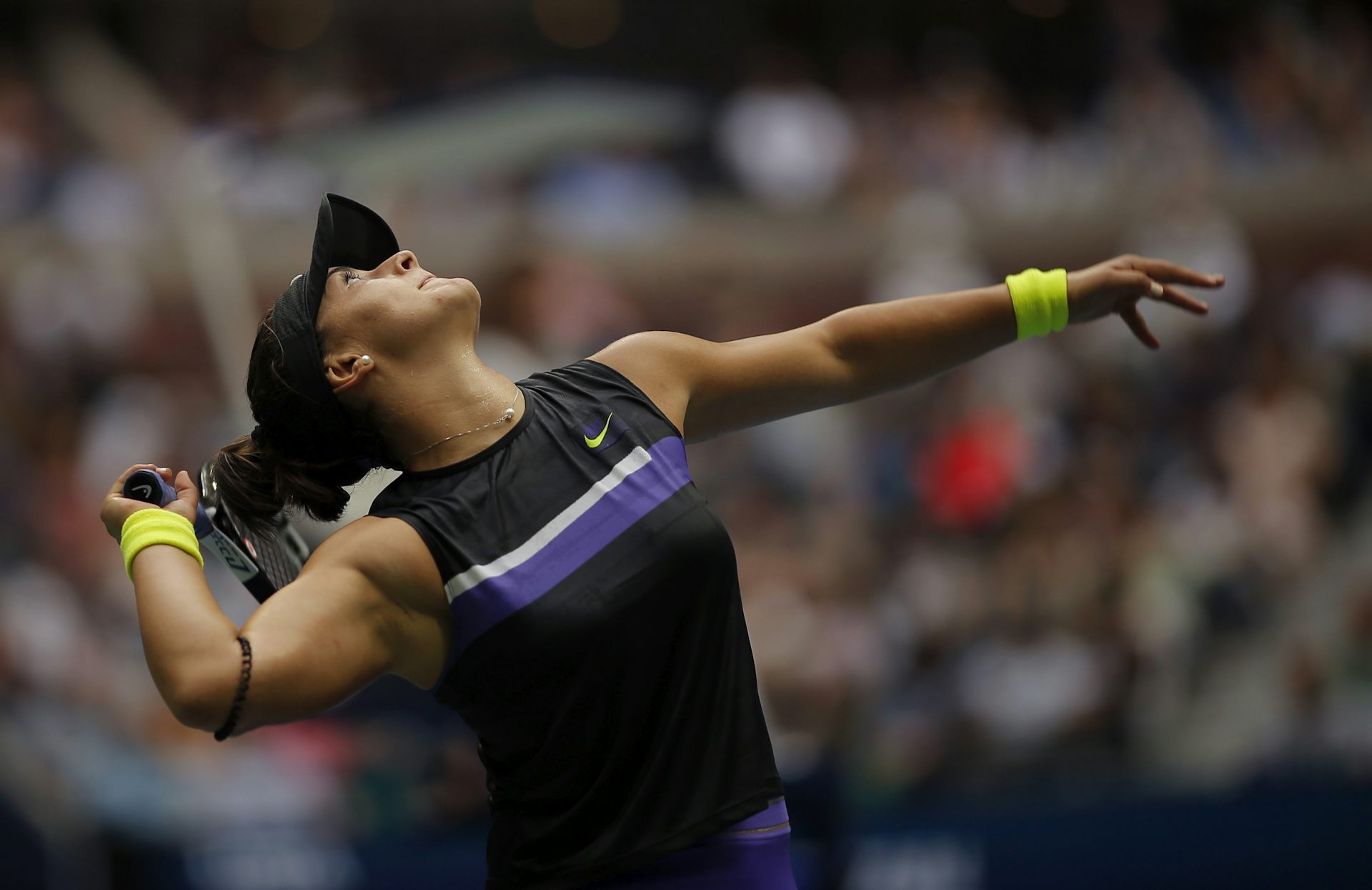 Bianca Andreescu serves to Serena Williams during the women’s singles final of the U.S. Open tennis championships, on her way to making Canadian history.