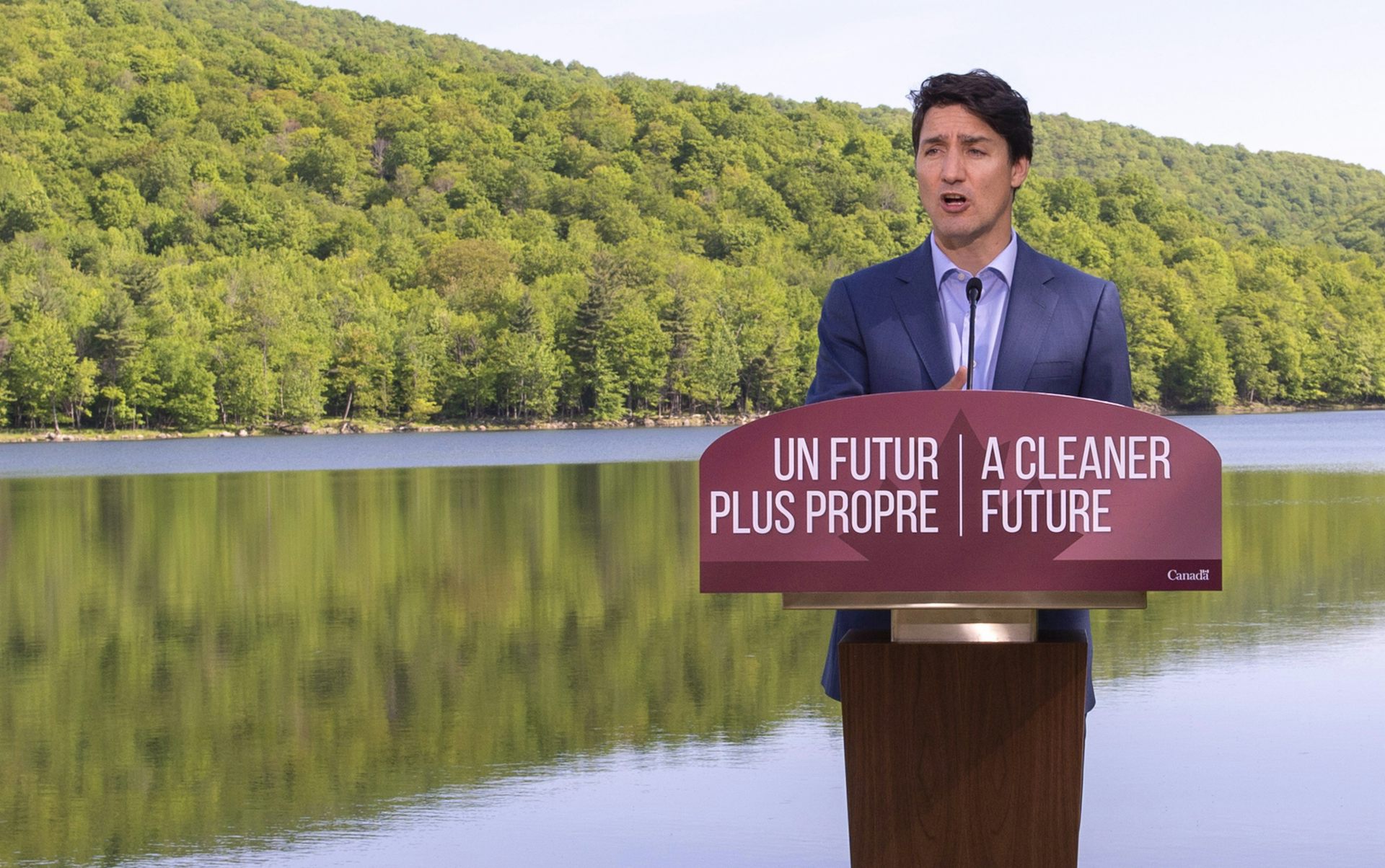 Le premier ministre Justin Trudeau annonce l'intention de son gouvernement d'interdire les plastiques à usage unique dès 2021, lors d'une conférence de presse à Mont-Saint-Hilaire, le 10 juin.