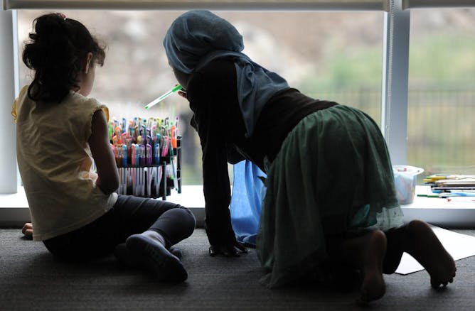 Two refugee children play at Tolan Park, a research and treatment center in Detroit, the site of the author’s research.