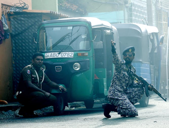 Security personnel near St Anthony’s Church Kochchikade in Colombo, Sri Lanka. April 22, 2019.