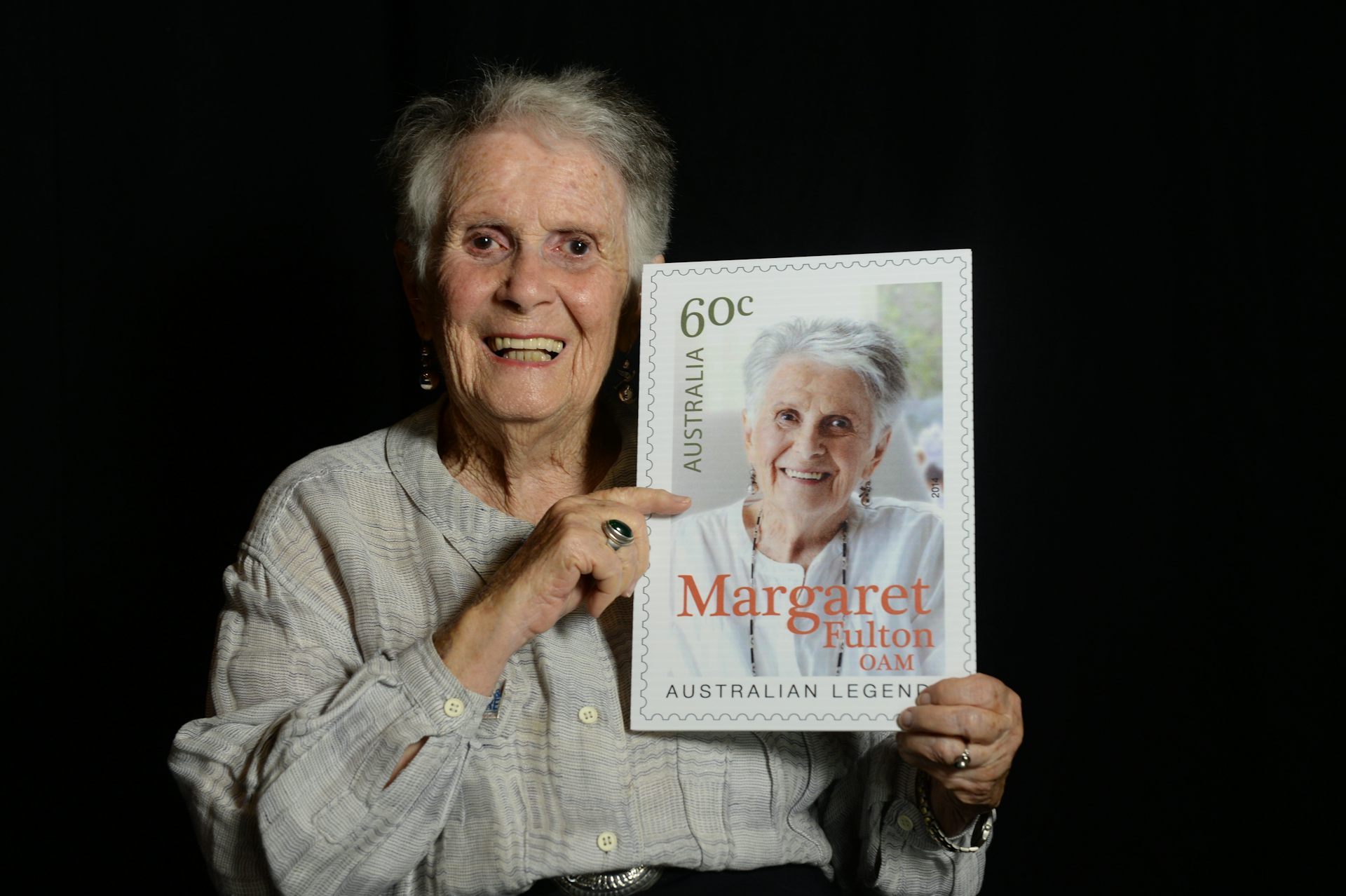 Legendary Australian food writer Margaret Fulton, pictured here at the launch of a stamp collection featuring her in 2014, has died aged 94.