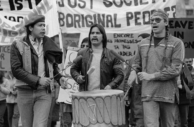 Apologies without clear policy shift are typically rejected as ‘empty gestures.’ Here, more than 100 Indigenous people march on Parliament Hill in 1981 to protest the elimination of Aboriginal rights in the proposed Canadian Constitution.