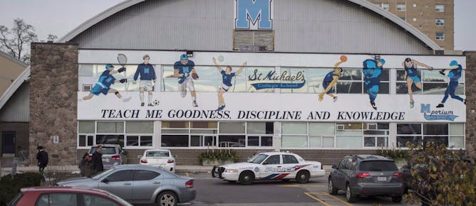 Toronto police respond to an incident at St. Michael’s College School, in Toronto on November 19, 2018.