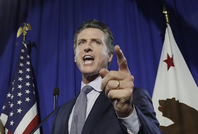 Democratic Lt. Gov. Gavin Newsom speaks at his campaign’s night watch party in San Francisco.