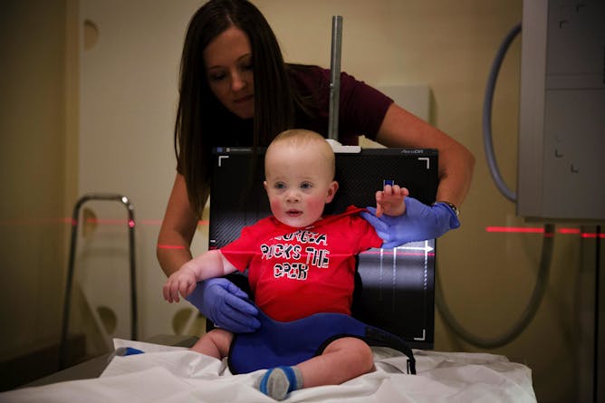 One-year-old Kilian Doherty being prepared for a chest X-ray Feb. 9, 2018 to determine if he had flu.