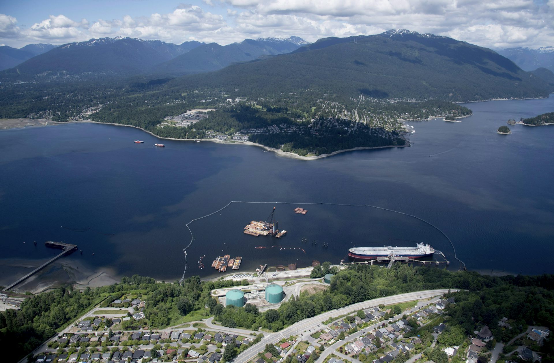 A aerial view of Kinder Morgan’s Trans Mountain marine terminal, in Burnaby, B.C., is shown on Tues., May 29, 2018.