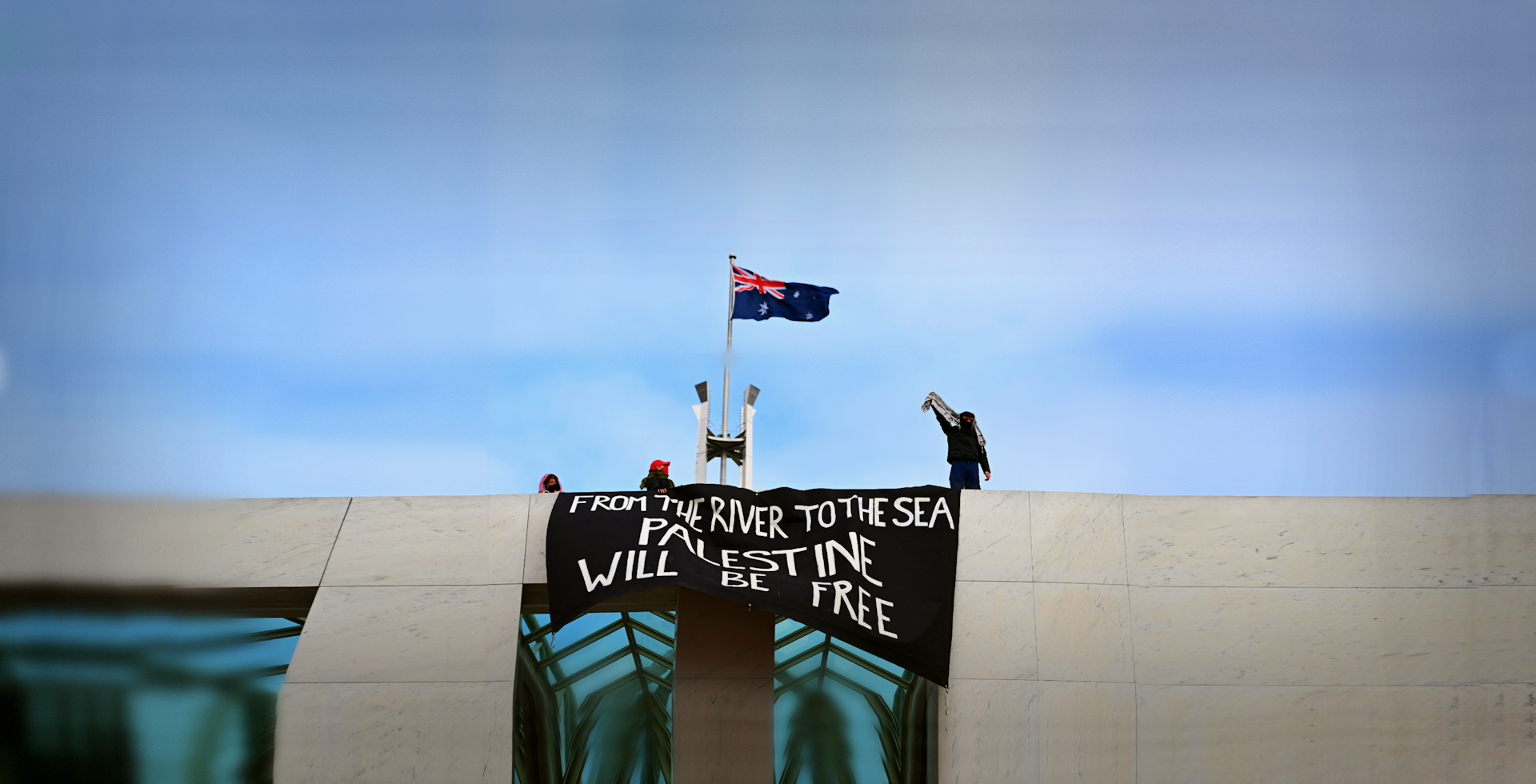 This came on a torrid day at Parliament House, when four pro-Palestinian protesters scaled the 2.5 metre fence near the building’s public entrance to get onto the roof.