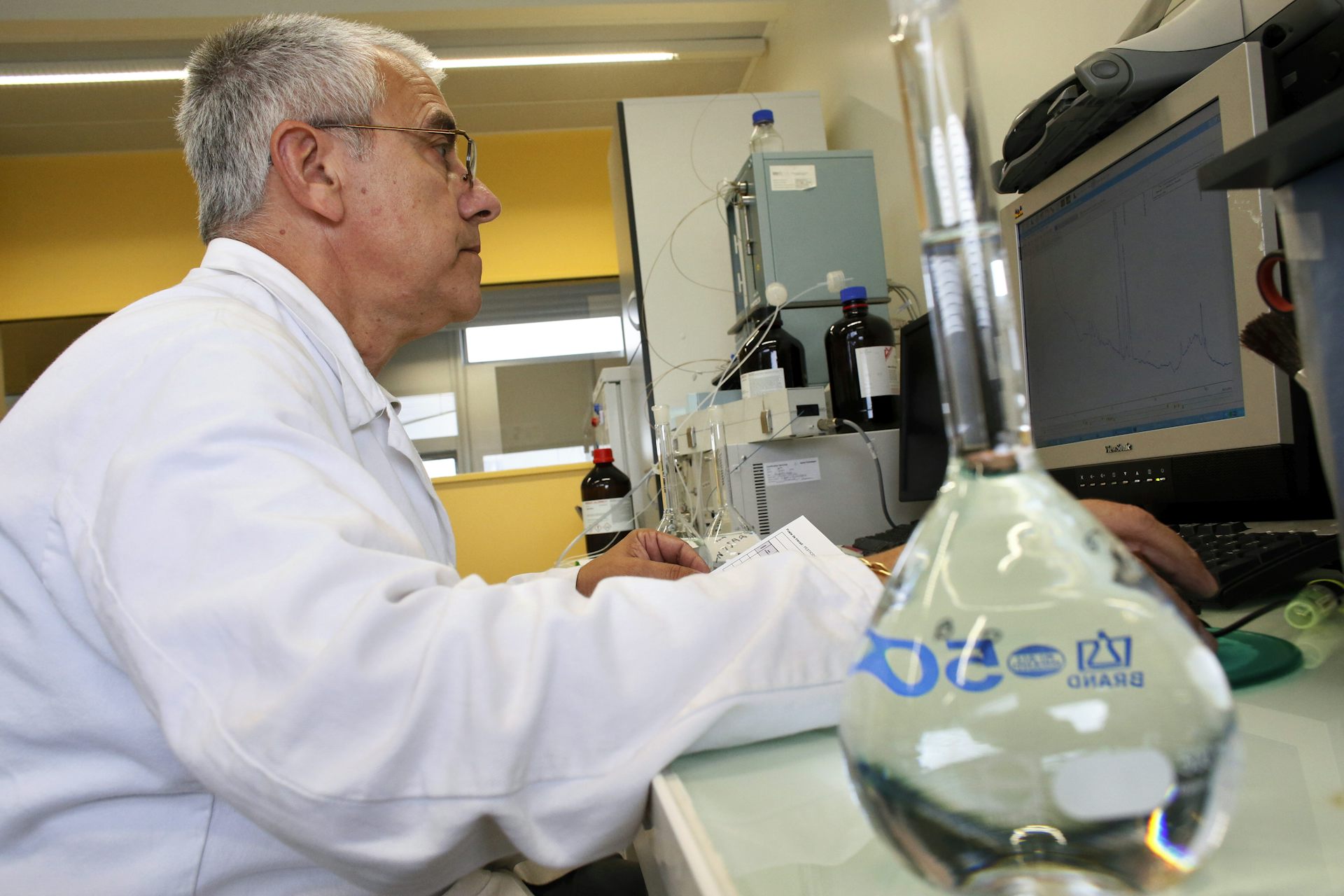Un scientifique examine des traces de pesticides dans l’eau au laboratoire Eau de Paris, à Ivry-sur-Seine en 2012.