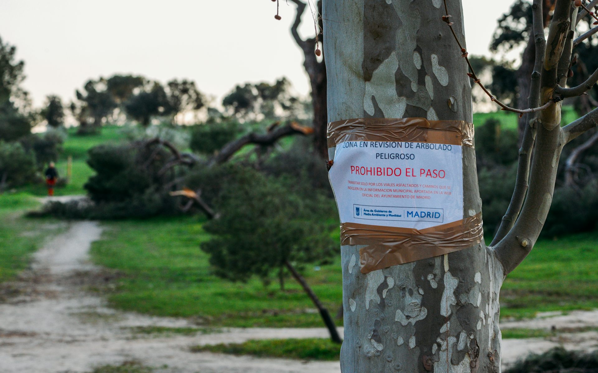 ASpecto de la Casa de Campo de Madrid tras el paso de la borrasca FIlomena.