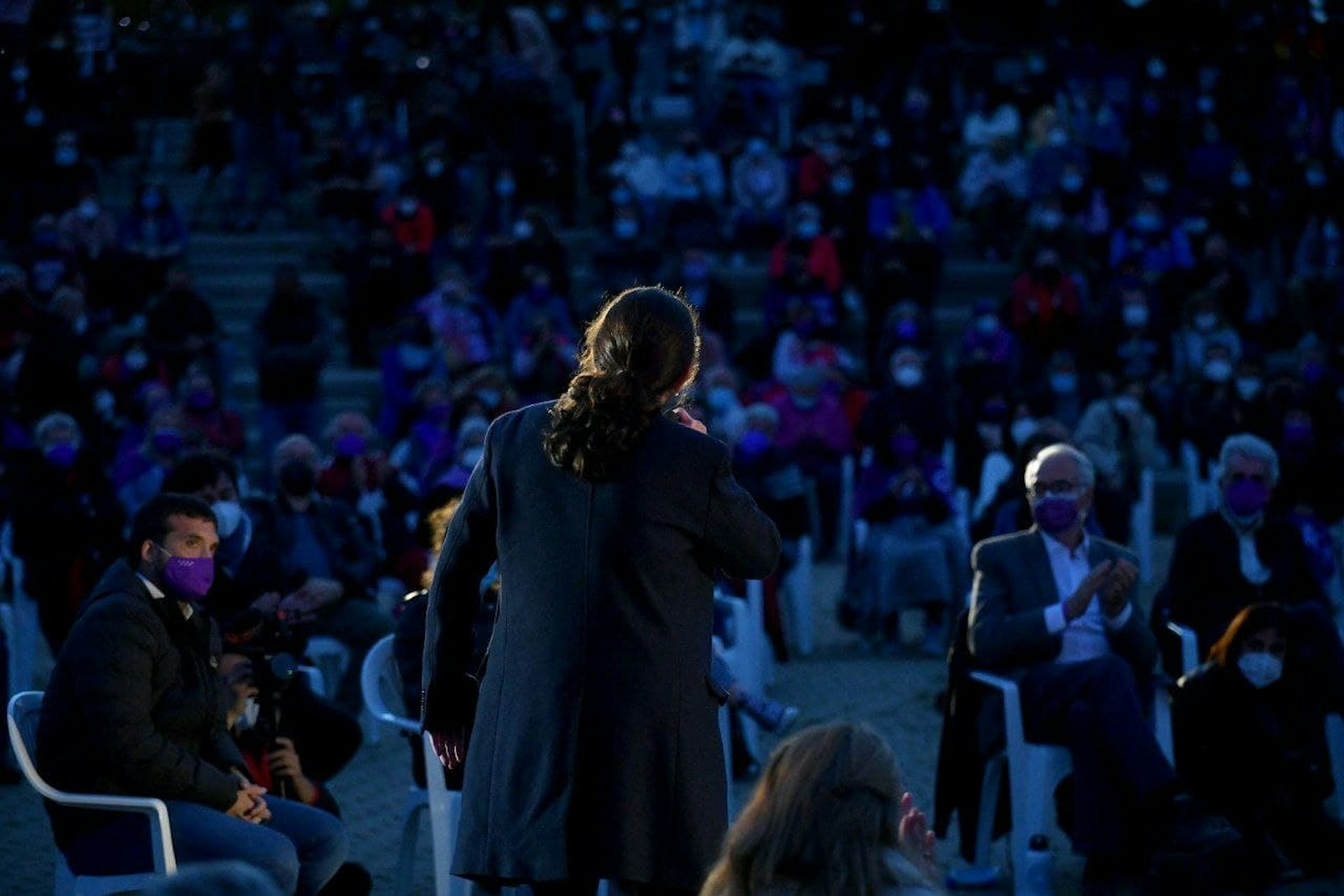 Pablo Iglesias, de espaldas, en un acto de la reciente campaña electoral en Madrid.