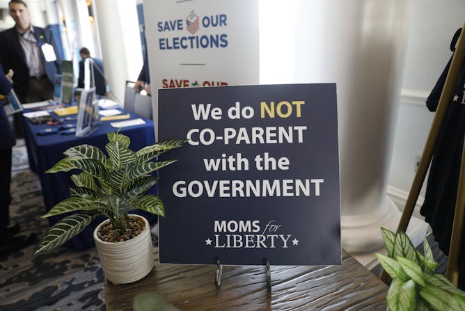 Political scientist Shauna Shames writes that the group – which began its life advocating resistance to COVID-19 mask mandates – is part of a continuum in American politics: “Change the clothes and hairdos and these ladies could look like the conservative white women who opposed busing in 1970s Boston, supported McCarthy anti-communism or blocked integration in Southern schools.”