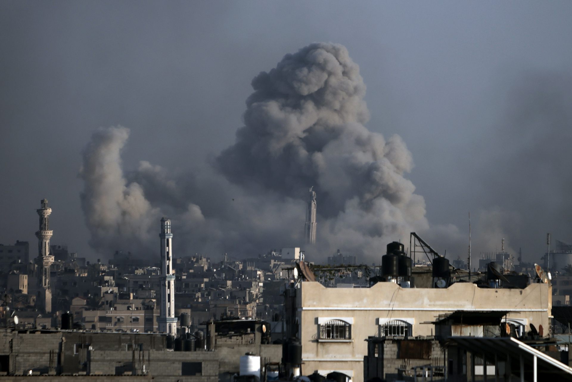 Scholars say Israel is intentionally destroying education and cultural institutions in Gaza. Here smoke rises following Israeli bombardments in Khan Younis, southern Gaza Strip, Jan. 17, 2024.