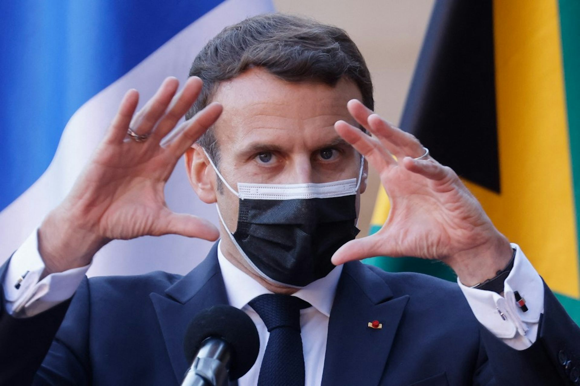 Emmanuel Macron lors d'un déplacement à Pretoria, le 28 mai. Le président français, chantre du ‘en même temps’ incarne bien la stratégie de triangulation.