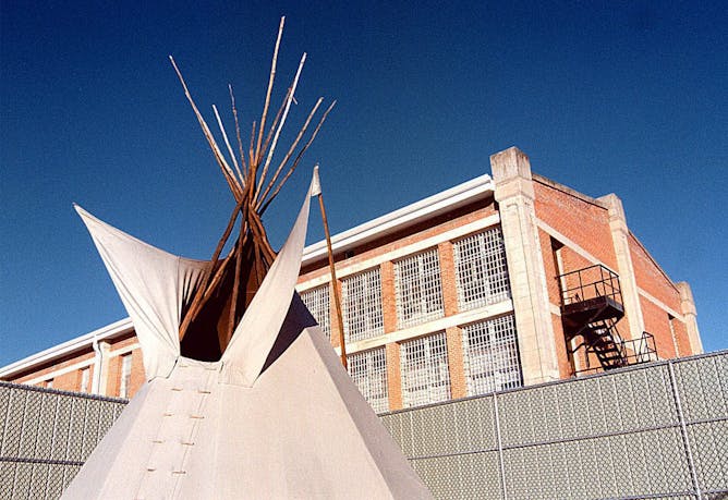 A teepee outside the women’s unit of the Saskatchewan Penitentiary in Prince Albert, Sask., Jan., 2001.