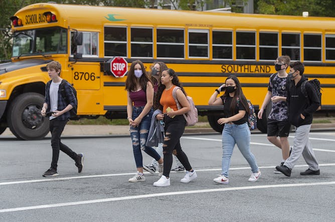 Students arrive at Dartmouth High School in Dartmouth, N.S., on Sept. 8, 2020.