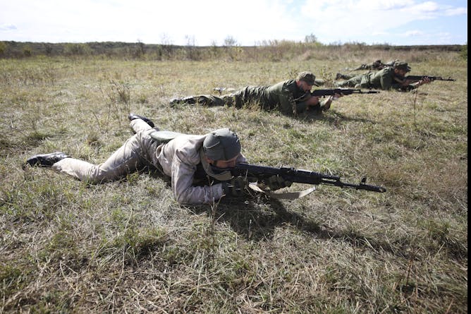Des recrues sur un champ de tir près de Krasnodar, dans le sud de la Russie, en octobre 2022. L’opération militaire spéciale russe en Ukraine devient une guerre totale.