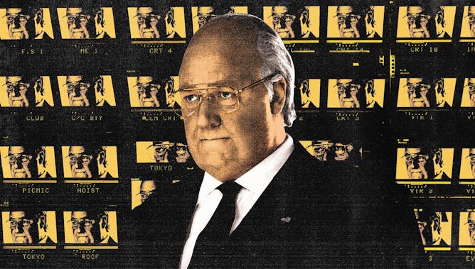 Russell Crowe en un cartel de promoción de la serie The Loudest Voice, en la que interpreta a Roger Ailes, el productor de televisión que fundó Fox News.