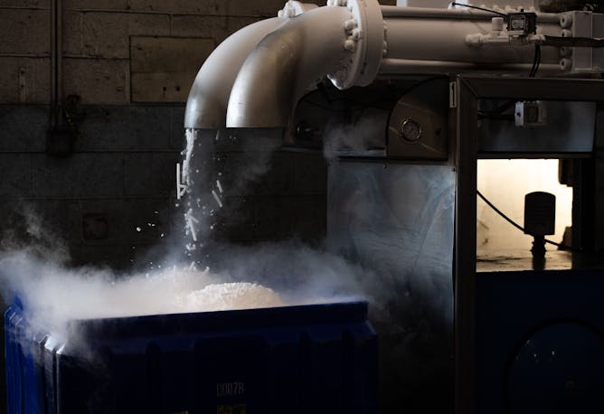 Dry ice pellets can be used to maintain the ultra-cold temperatures required for Pfizer/BioNTech’s COVID-19 vaccine.
