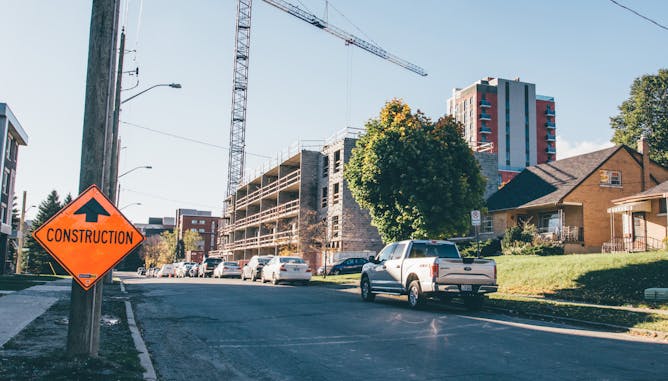 Researchers examined 15 Ontario municipalities with a major university campus, and found only one (Waterloo) had adopted plans designed to accommodate student housing near the campus. Student-oriented housing under construction in Waterloo, Ont., in 2016.