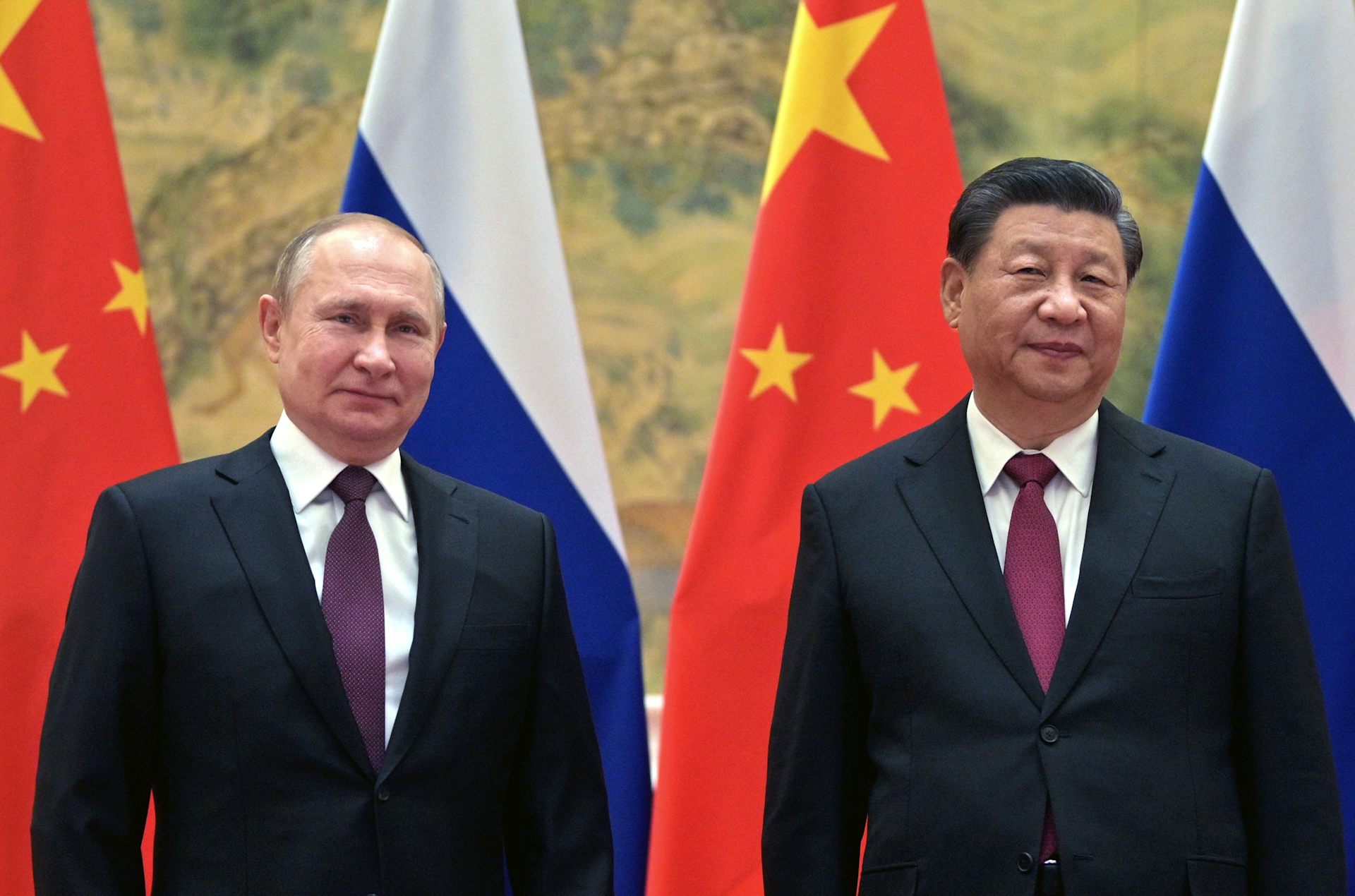 Le président chinois Xi Jinping et le président russe Vladimir Poutine posent pour une photo avant leurs entretiens à Pékin, en Chine, le 4 février 2022, durant les Jeux olympiques d'hiver.