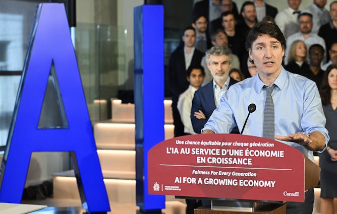 Prime Minister Justin Trudeau speaks during an announcement on innovation for economic growth in advance of the 2024 federal budget in Montréal in April 2024.