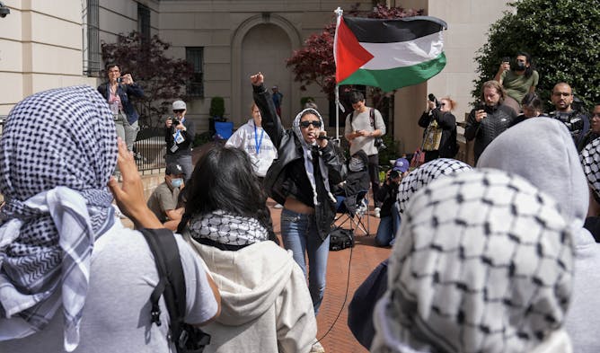 Columbia University students express their solidarity with Palestinians at a protest on April 30, 2024.