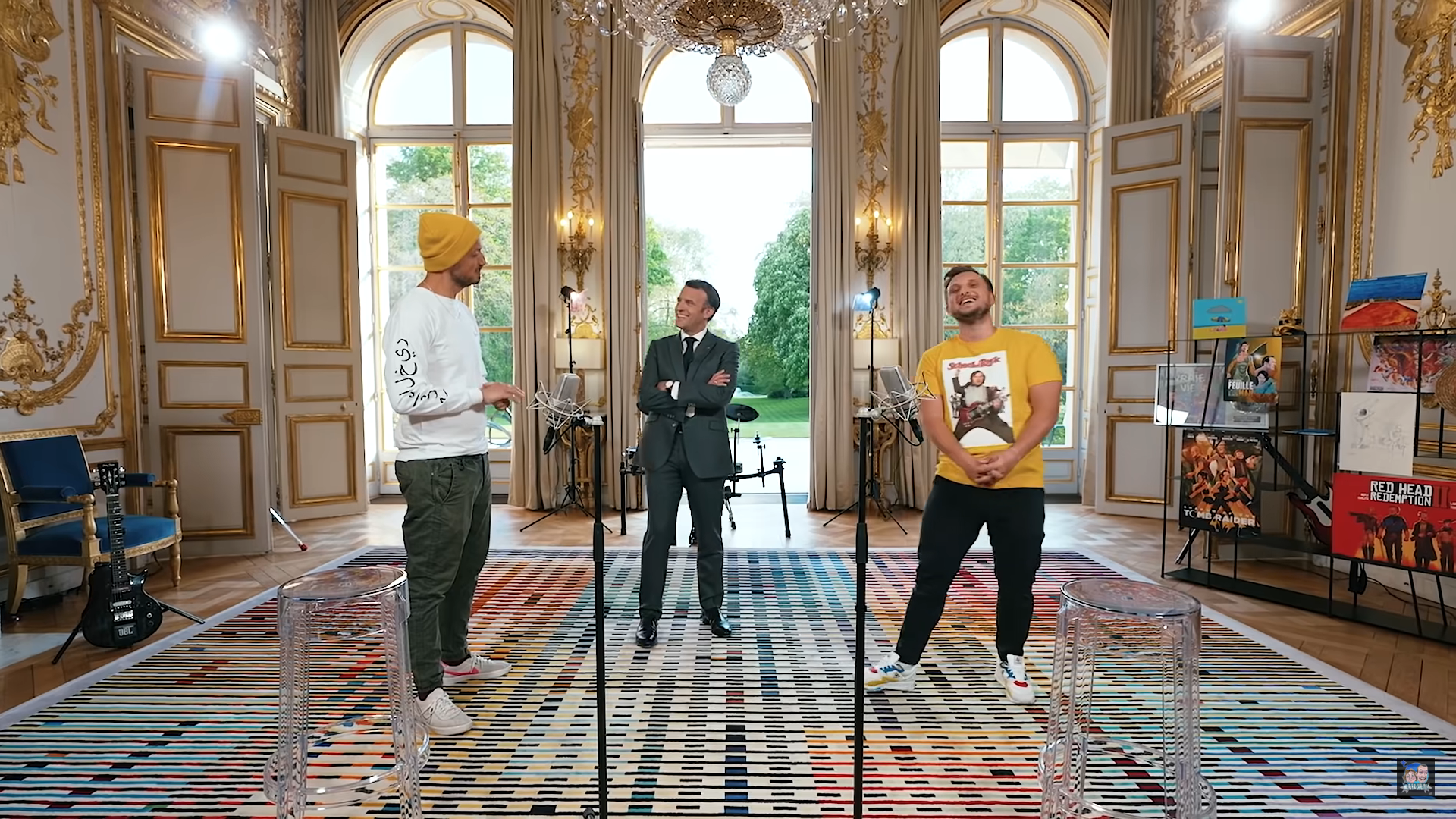 Emmanuel Macron avec Mcfly et Carlito lors du « Concours d’anecdotes »