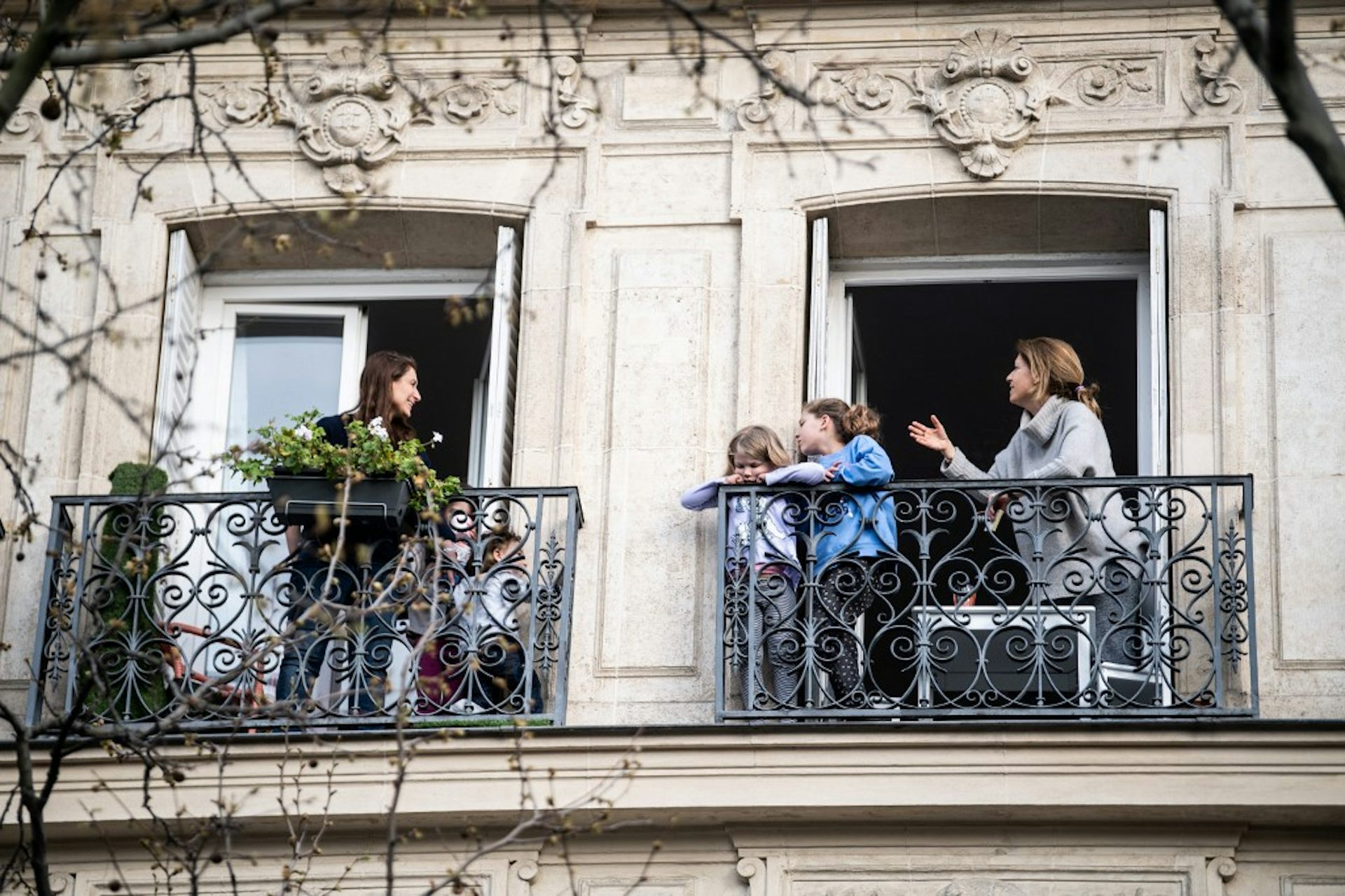 Être ou non proche de ses voisins dépend de nombreux facteurs comme la classe sociale. Photo d'illustration : Paris, lors du confinement de mars 2020.