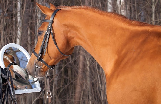 The test, sometimes called the mirror test or the mark test, involves scientists drawing marks on the animals. If the animals then show an interest in that mark when they see their reflection, by trying to touch that part of their body, the conclusion is they’ve recognised themselves. In a recent study, horses passed the test, joining bottlenose dolphins, magpies and elephants in the exclusive list. But not dogs.